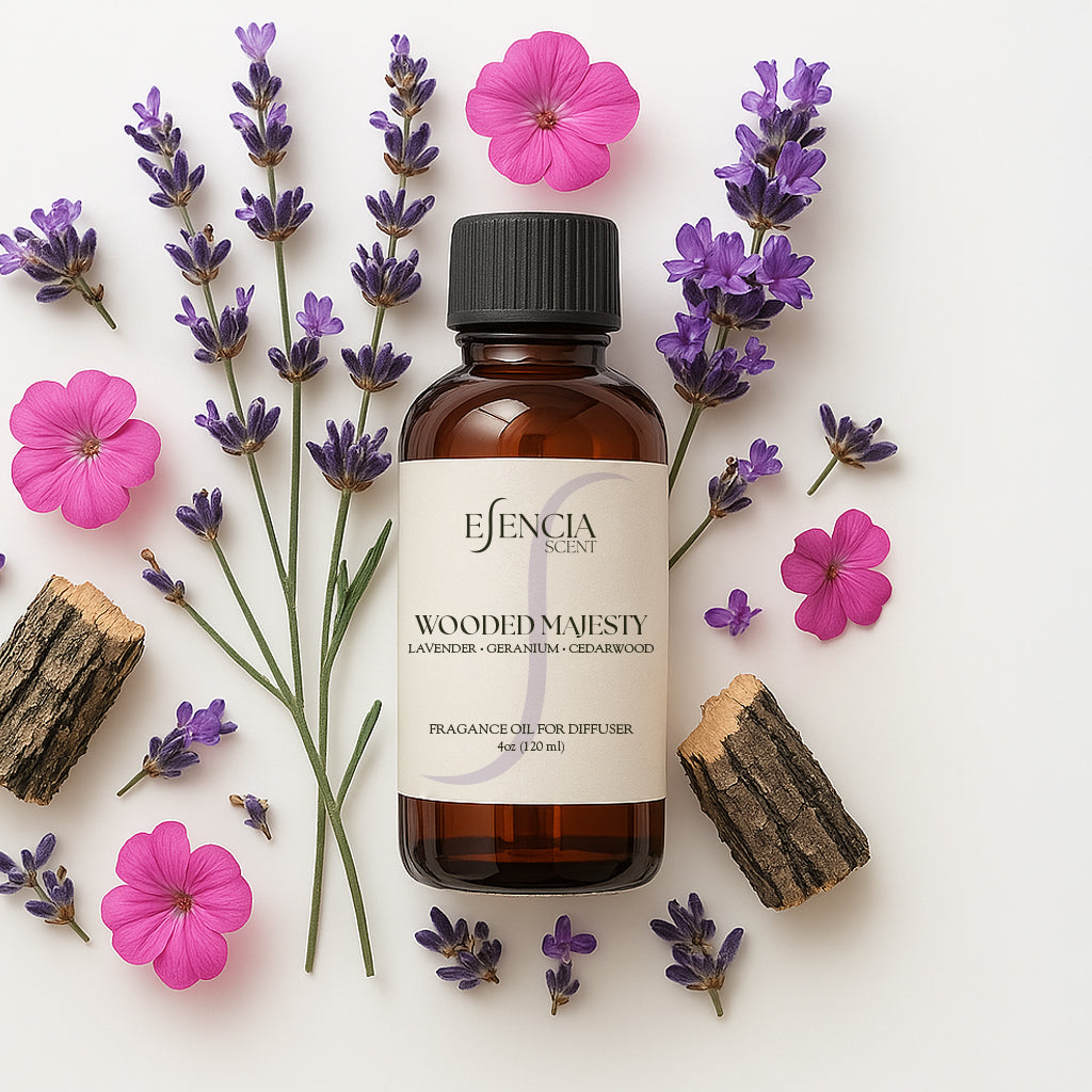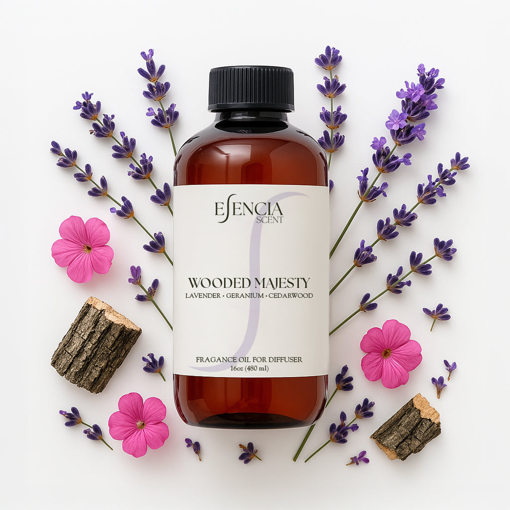 Wooden Majesty by Esencia Scents is a grounding, floral-woody blend that brings a sense of balance to your space. Soothing lavender and fresh geranium offer a floral uplift, while cedarwood anchors the blend with a warm, earthy depth.