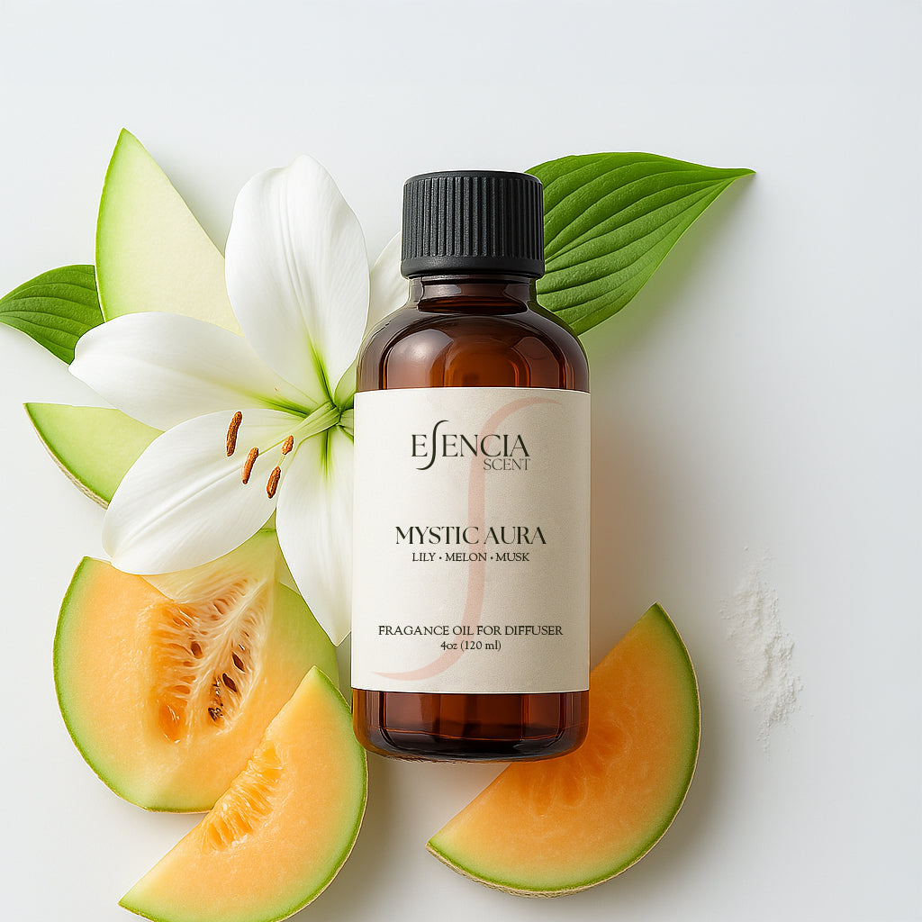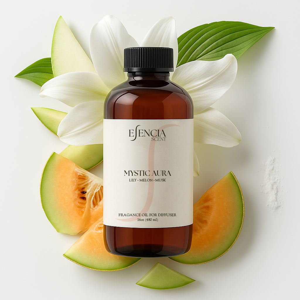 Mystic Aura by Esencia Scents brings a refreshing yet grounded scent that’s perfect for creating a calm space. Delicate notes of lily bring a soft floral feel, while juicy melon adds a splash of freshness. A smooth base of musk ties it all together, offering a subtle, long-lasting aroma that never overwhelms.